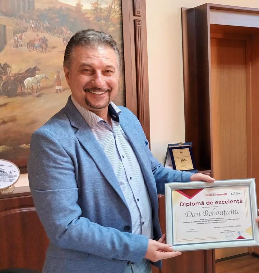 Primarul municipiului Hunedoara, dl. Dan Bobouțanu, a fost desemnat, pentru a doua oară „Primarul anului 2021”, primind o „Diplomă de Excelență” pentru activitatea deosebită adusă municipiului de pe Cerna.